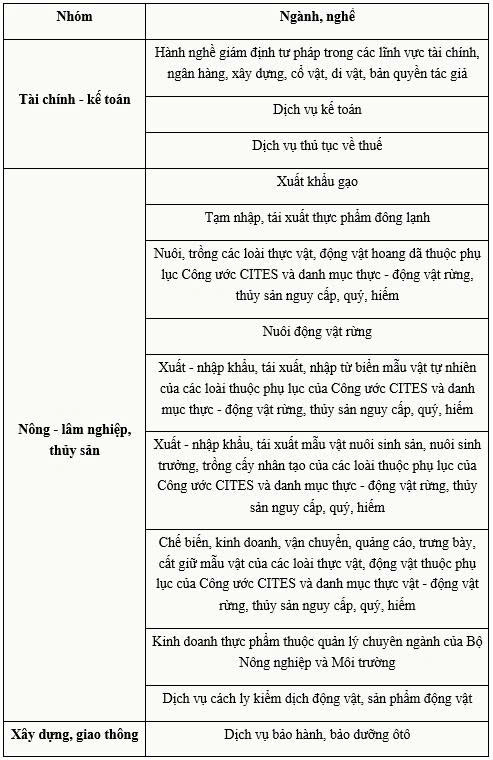 Theo đó, 25 ngành, nghề kinh doanh có điều kiện được chính phủ đề xuất cắt giảm giấy phép bao gồm: