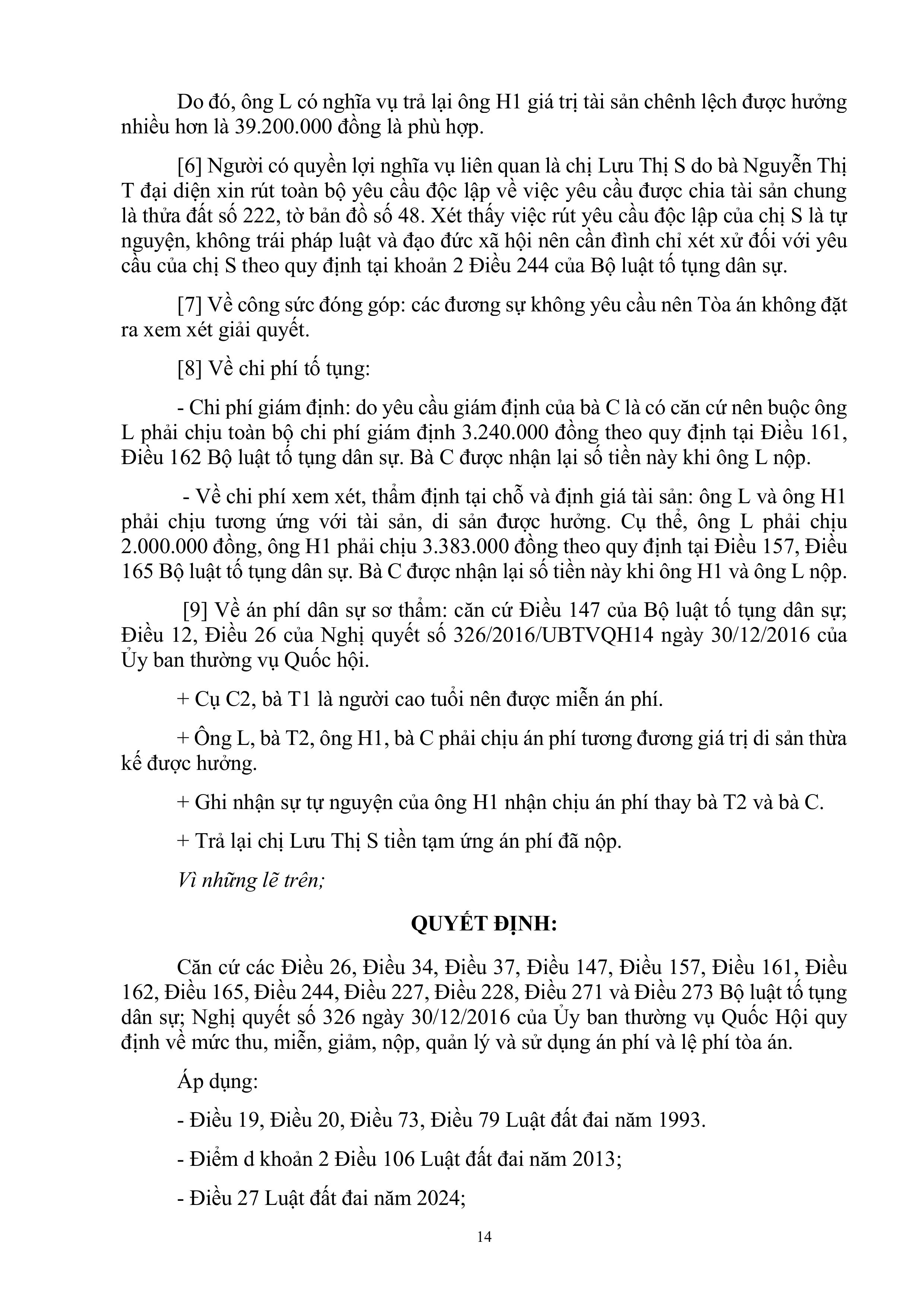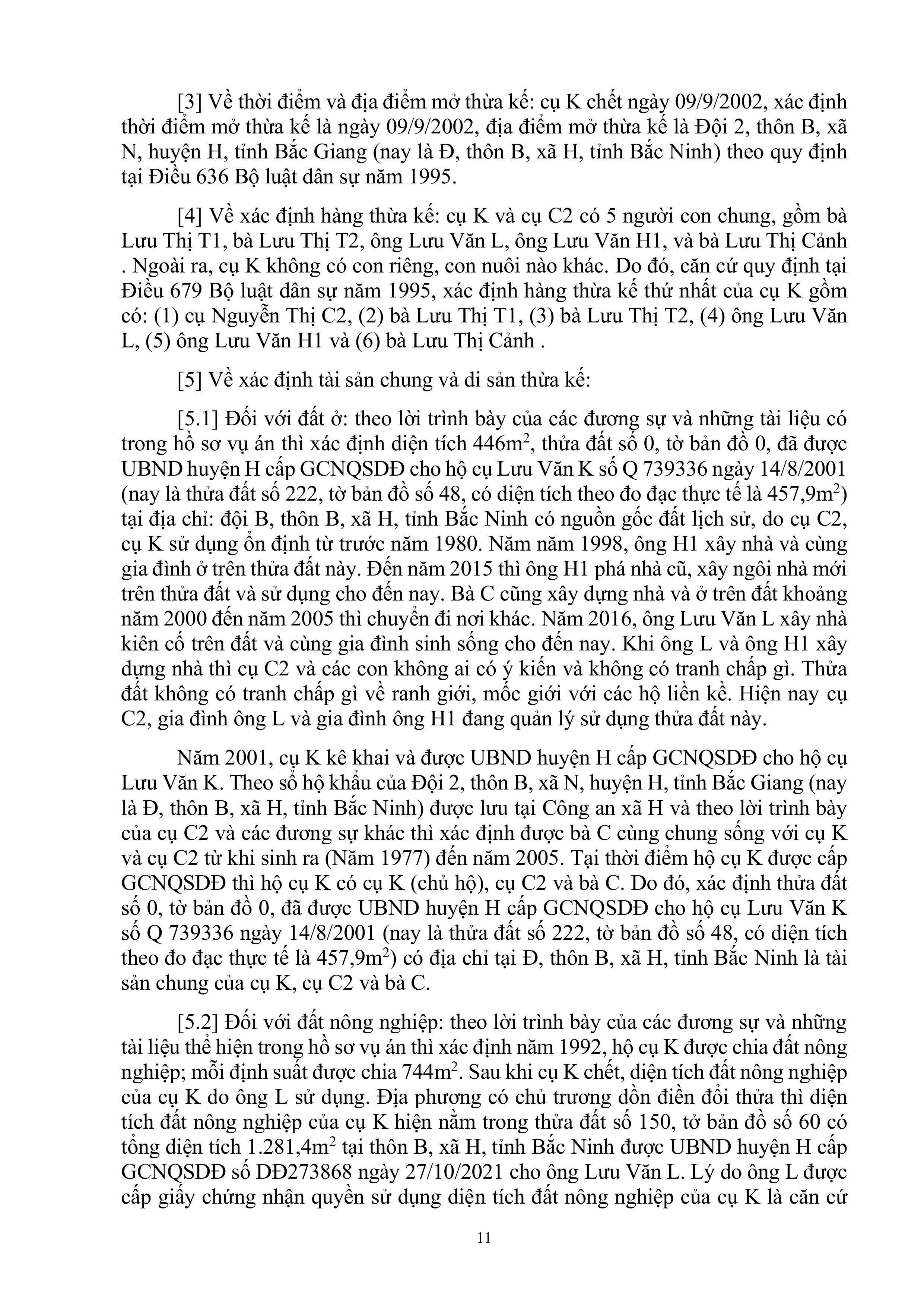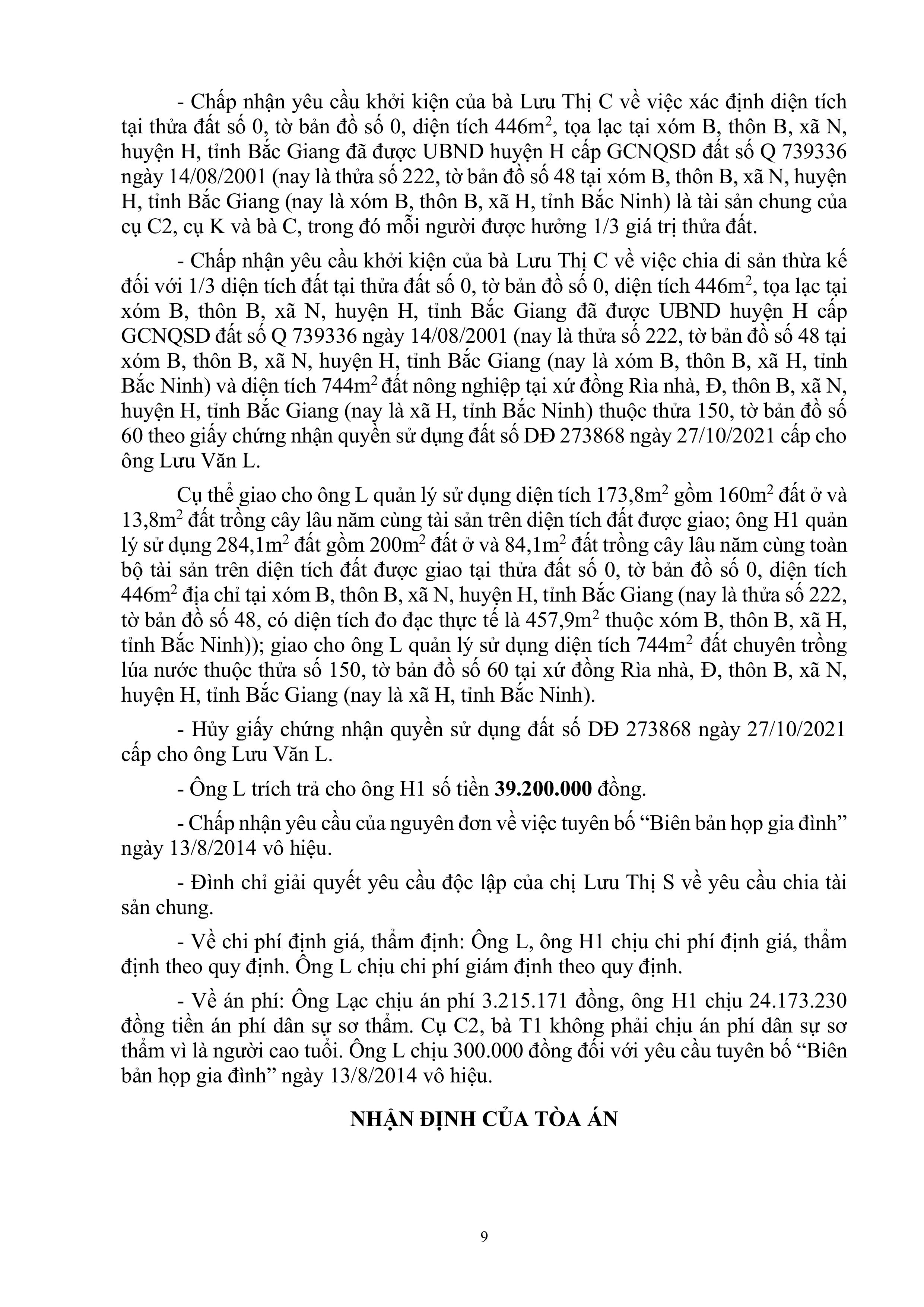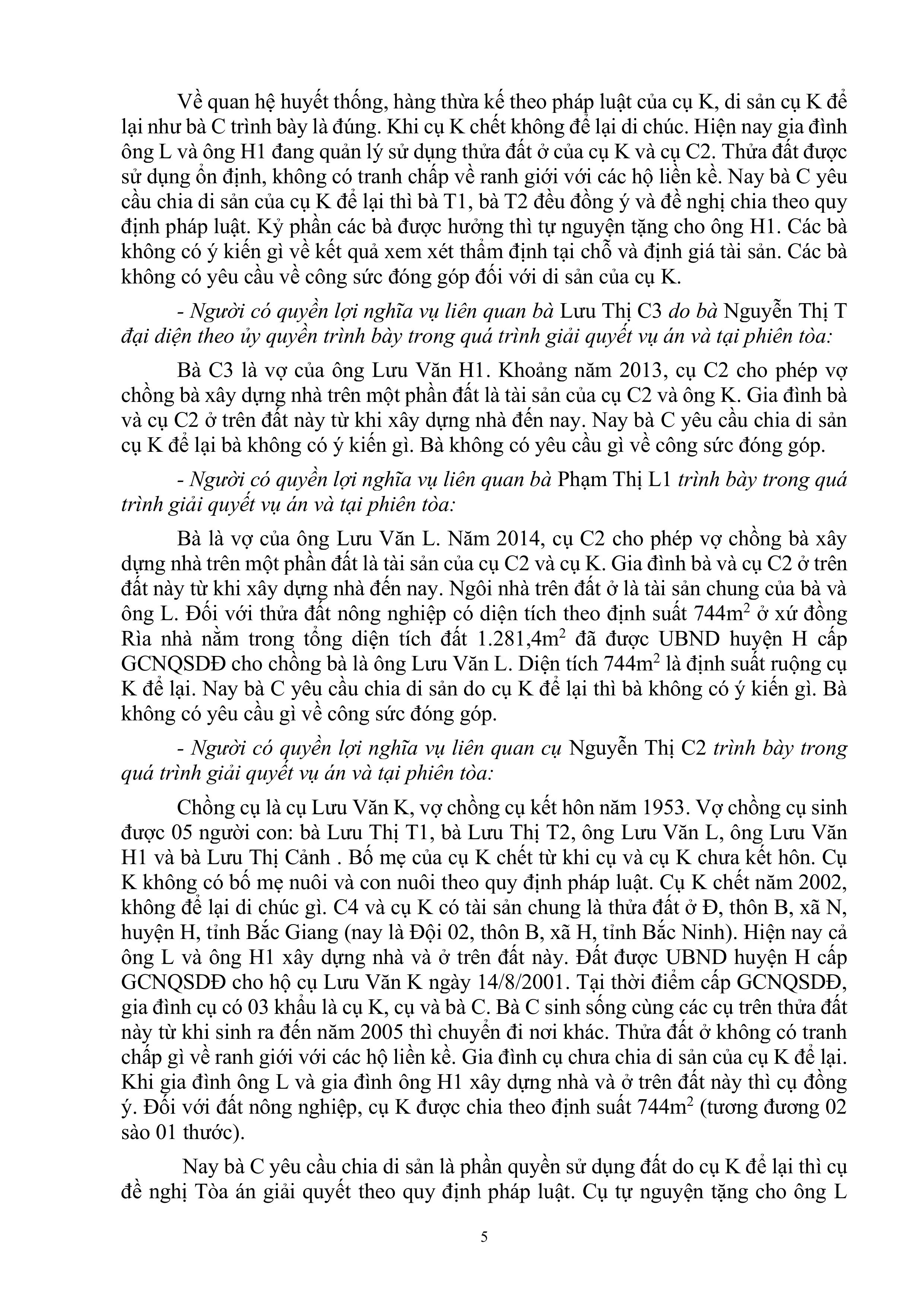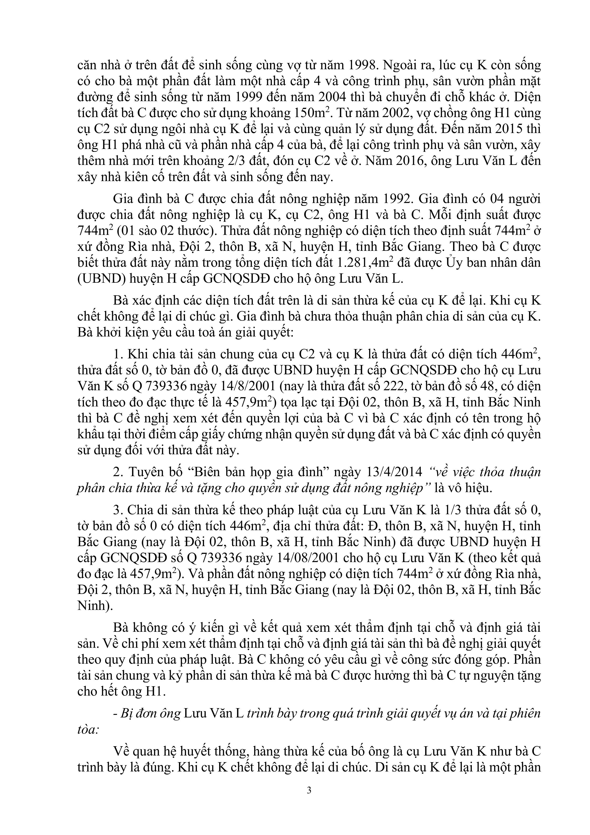 Đơn khởi kiện, bà Lưu Thị C yêu cầu Tòa án xác định: (i) Bà có quyền sử dụng đối
