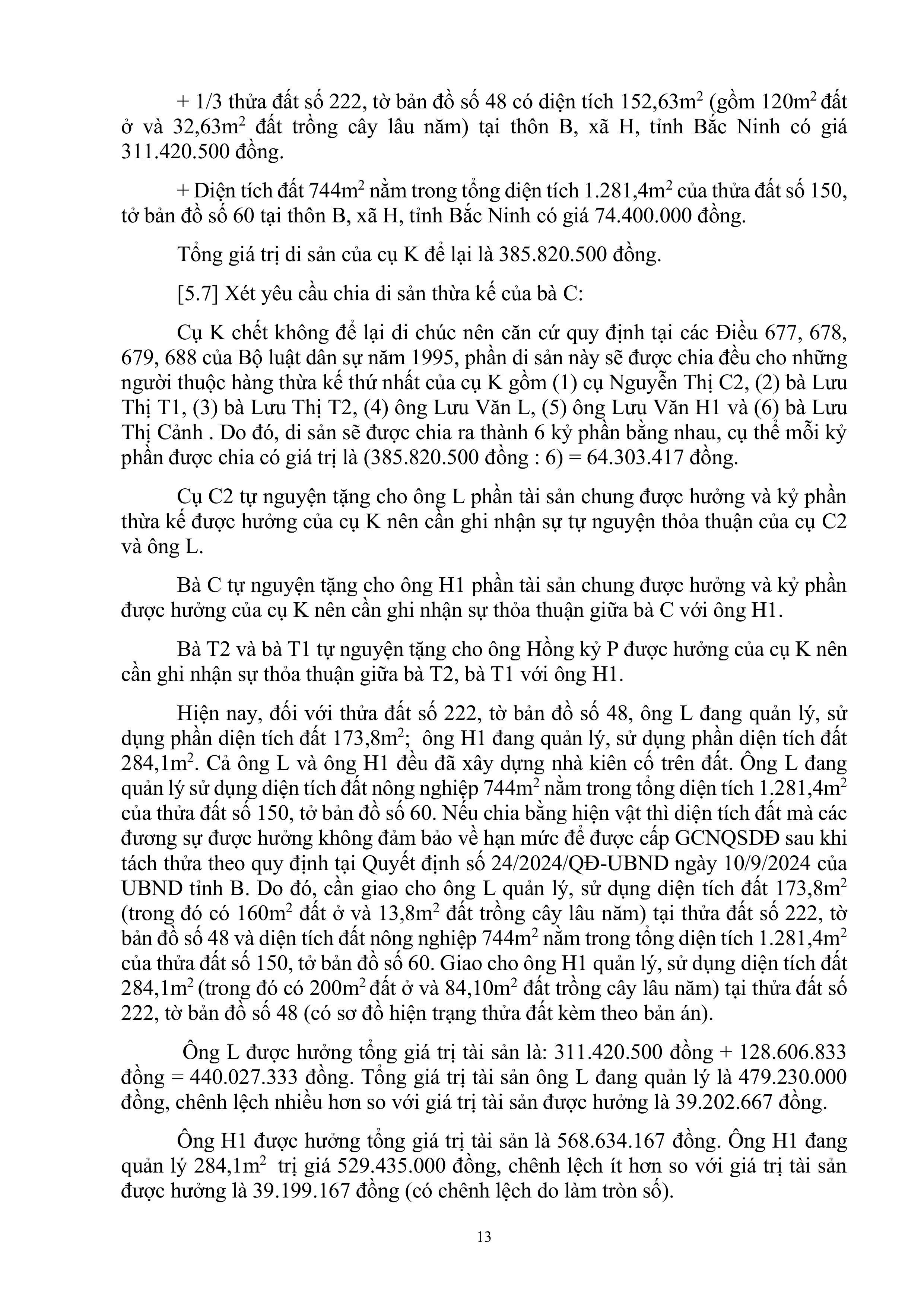 sản thừa kế của cụ K là 1/3 Thửa đất 222 và phần diện tích 744m2 nằm trong tổng
