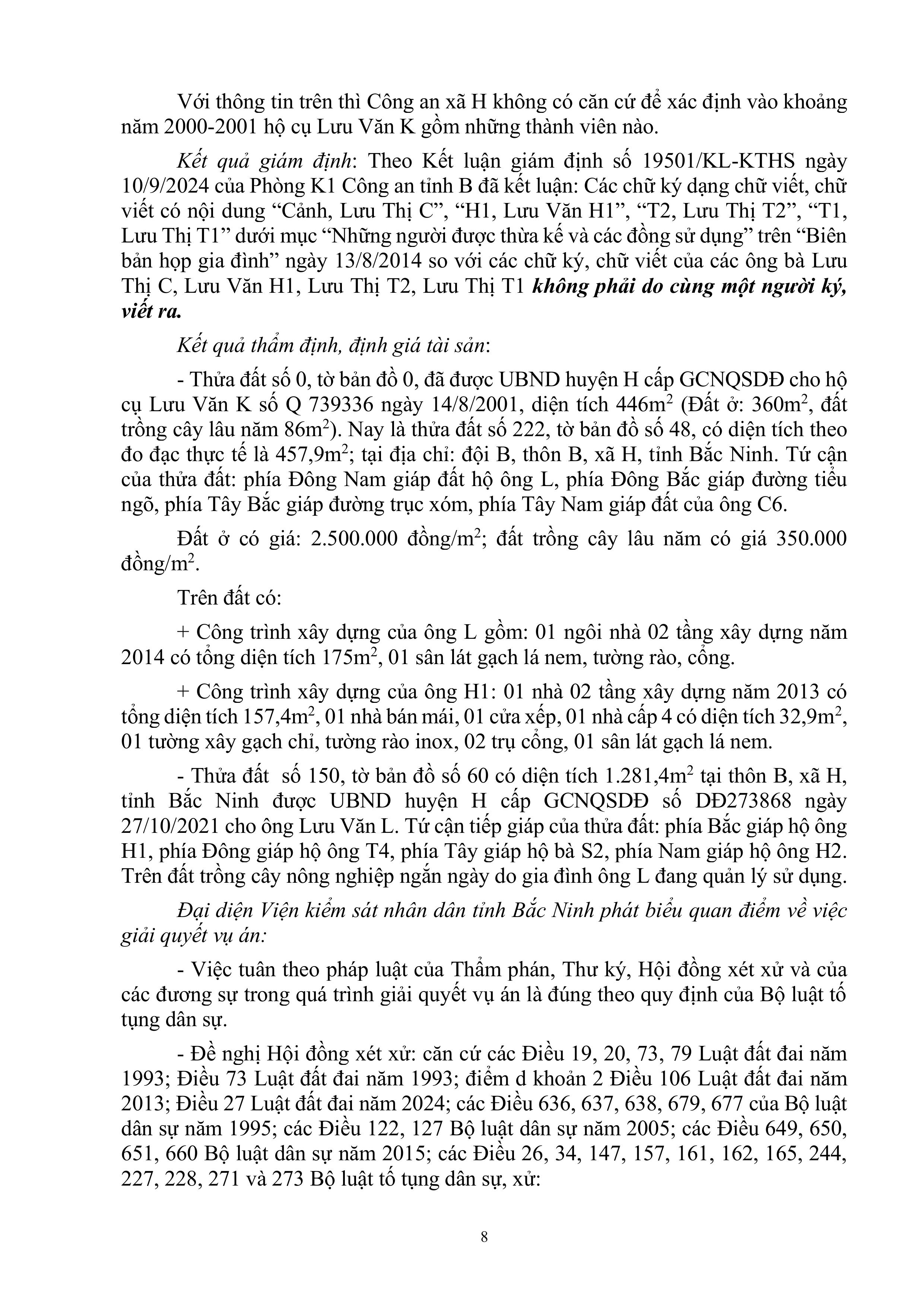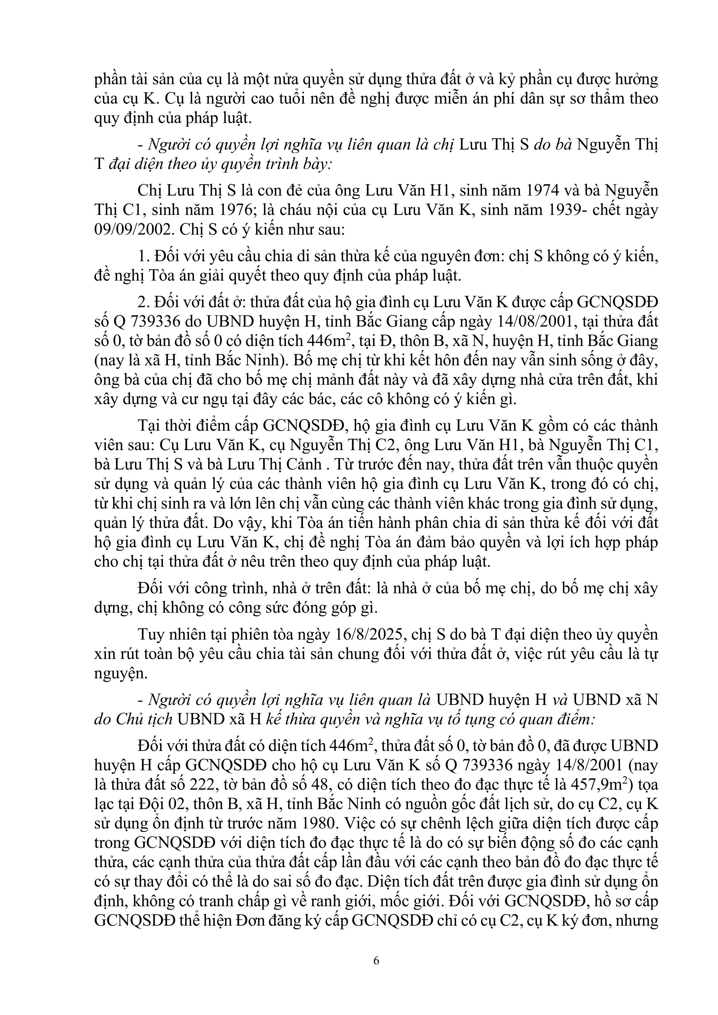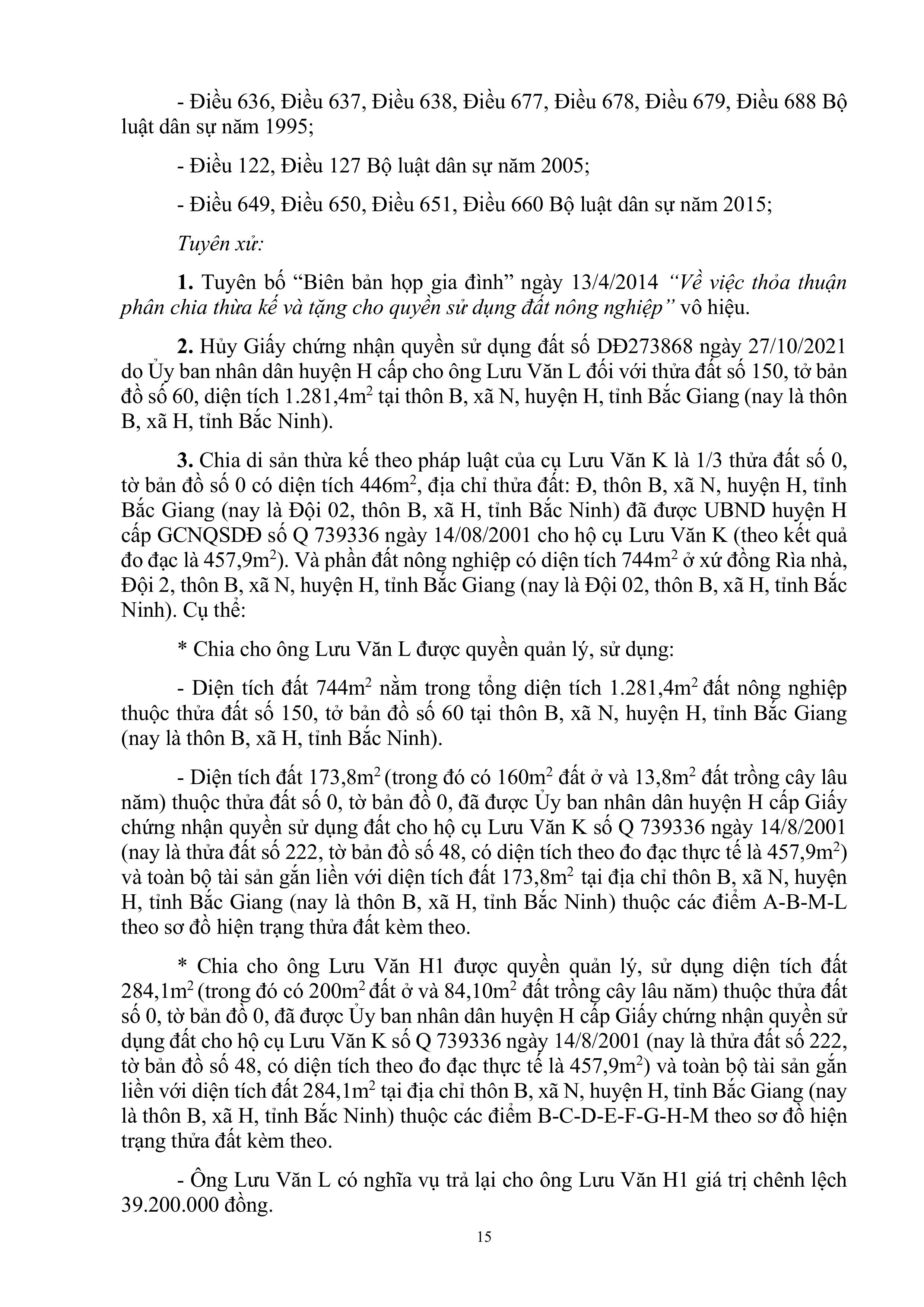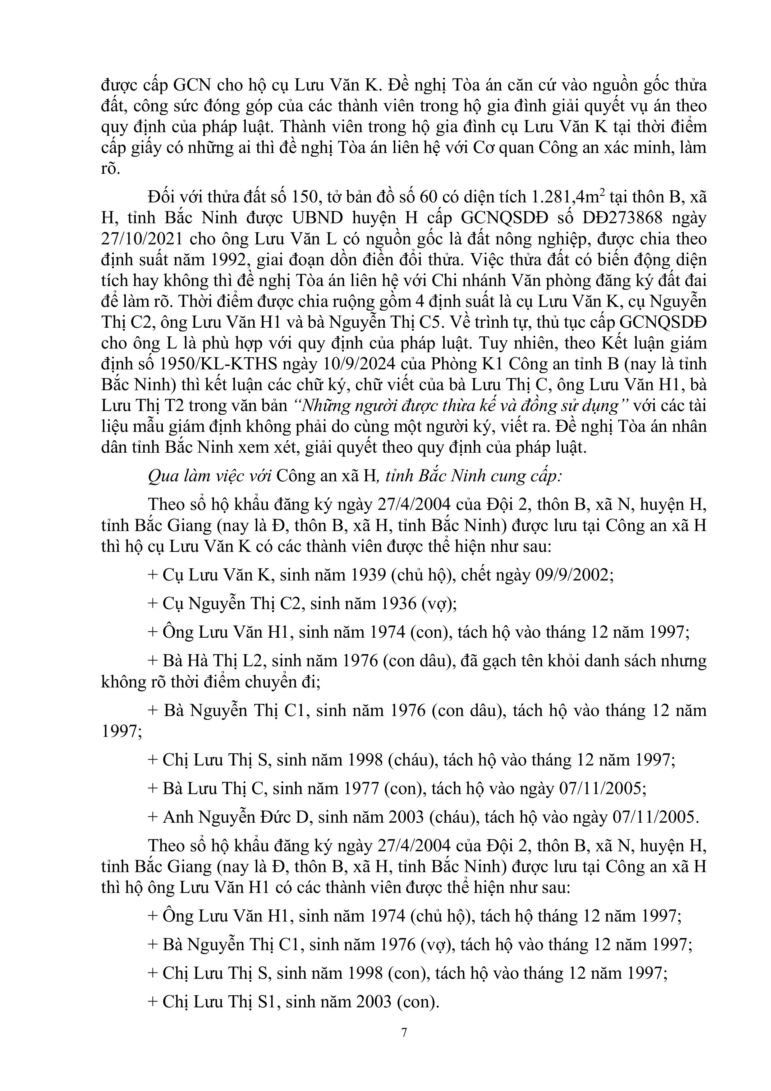Địa chỉ tại: Đội 02, thôn B, xã H, tỉnh Bắc Ninh cho hộ cụ Lưu Văn K. Tại thời