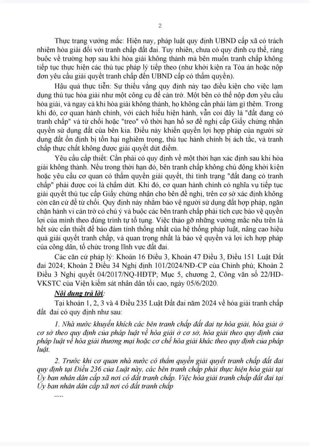 việc xác định và xử lý các tranh chấp liên quan đến đất đai vẫn còn phát sinh