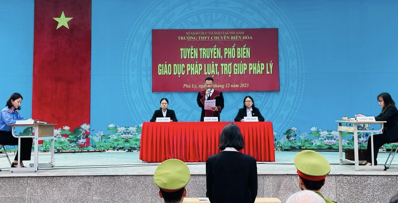 Quang cảnh buổi tuyên truyền pháp luật tại Trường THPT Chuyên Biên Hòa, tỉnh Hà Nam
