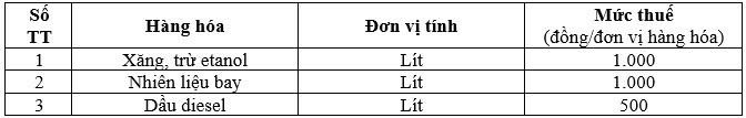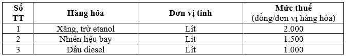 Theo dự thảo, mức thuế bảo vệ môi trường mới đối với xăng (trừ etanol), nhiên liệu bay, dầu diesel trong thời gian Nghị quyết này có hiệu lực thi hành (bao gồm cả thời gian điều chỉnh hiệu lực (nếu có) như sau: