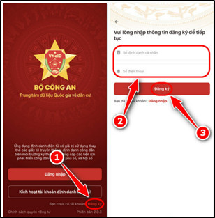 Bước 2: Mở ứng dụng VNeID và nhấn Đăng Ký => Nhập Số định danh cá nhân hoặc Số căn cước công dân => nhập Số điện thoại => Nhấn Đăng ký.