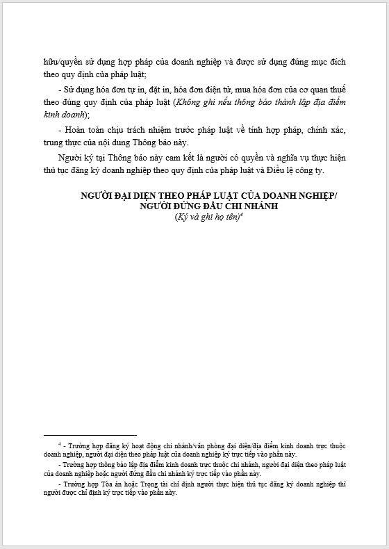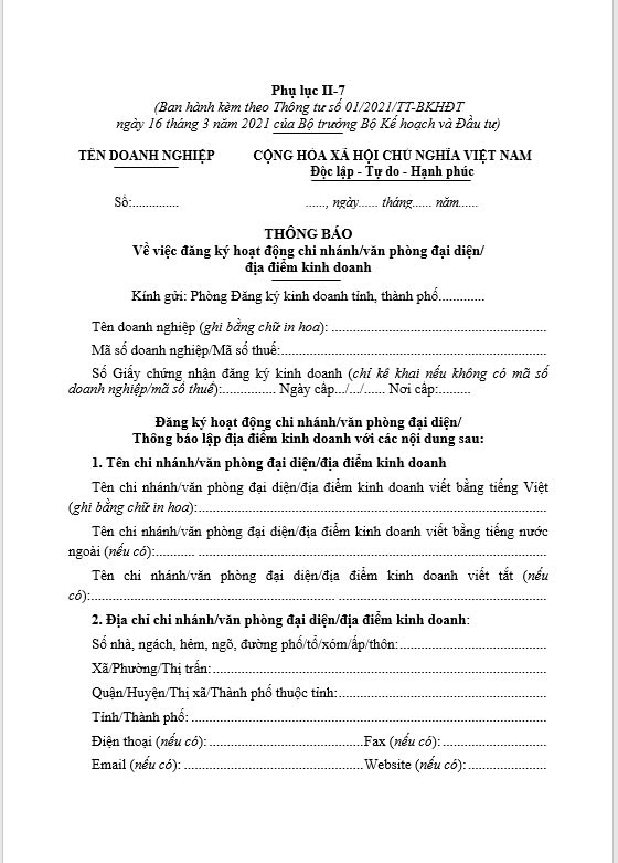 Thông báo về việc đăng ký hoạt động chi nhánh/văn phòng đại diện/ Địa điểm kinh doanh