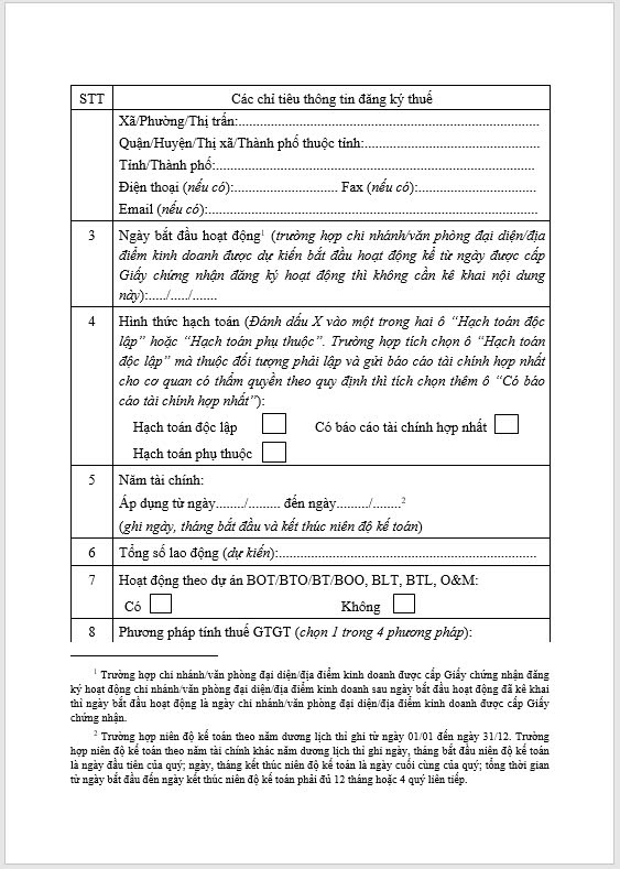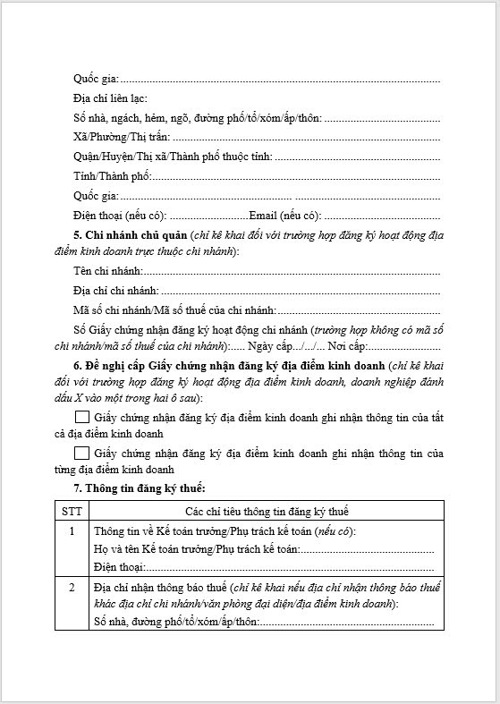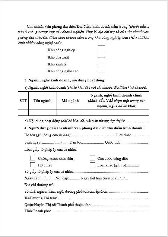 Thông báo Về việc đăng ký hoạt động chi nhánh/văn phòng đại diện/ Địa điểm kinh doanh