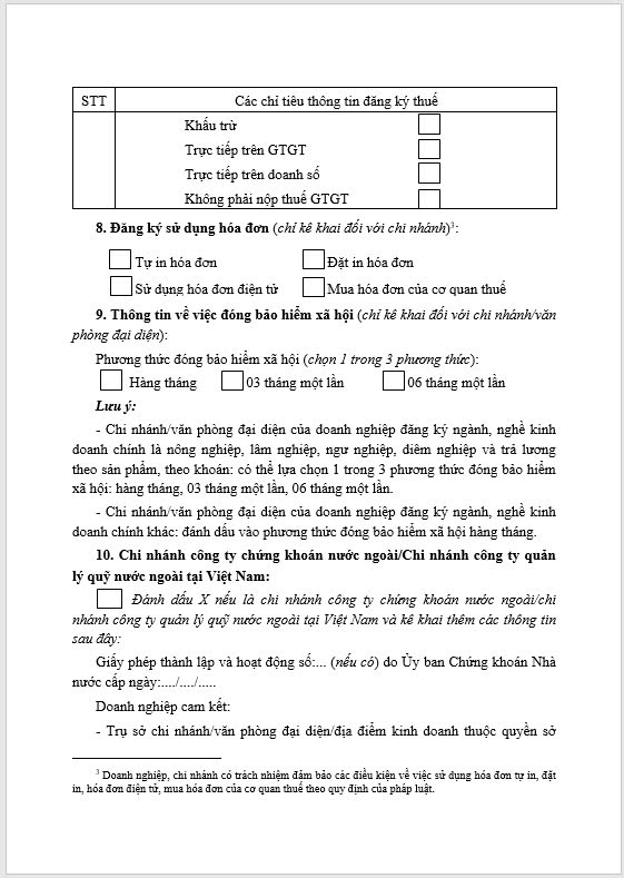 Biểu Mẫu Doanh nghiệp