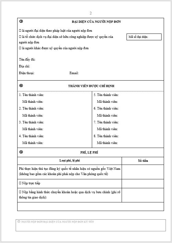 Tờ khai Đăng ký quốc tế nhãn hiệu Có nguồn gốc việt nam