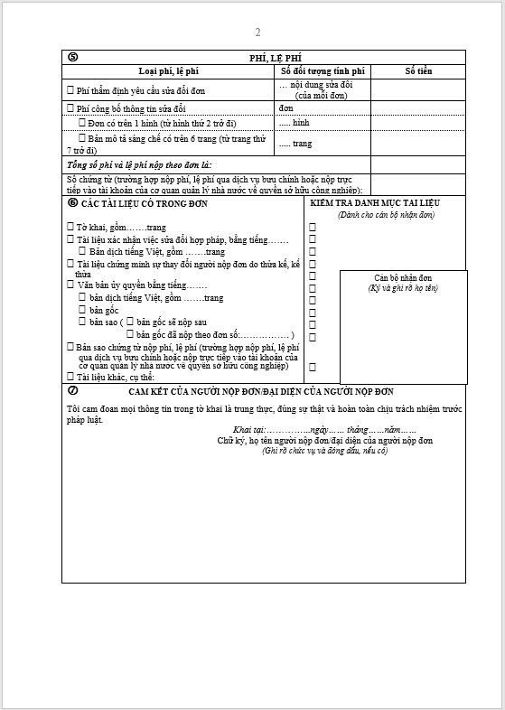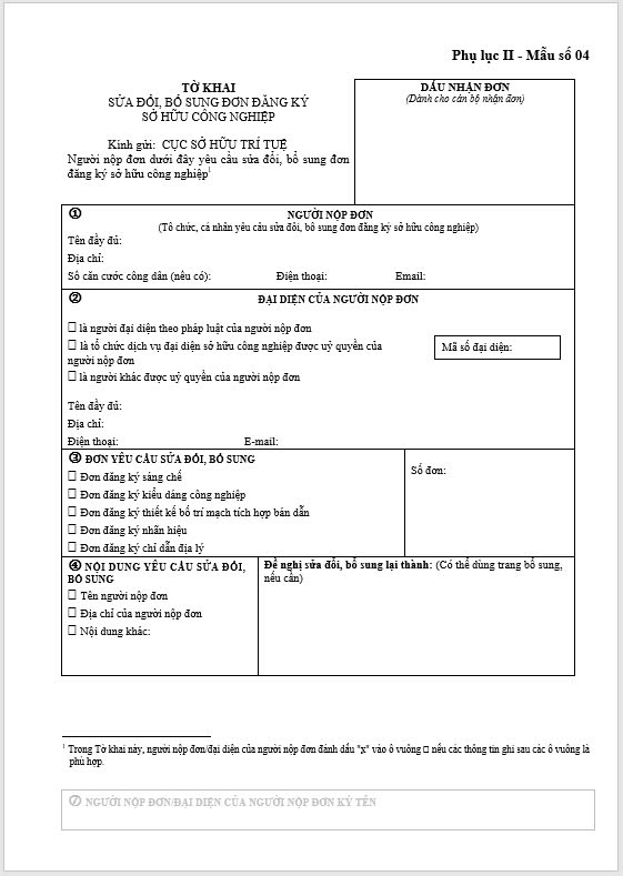 Tờ khai sửa đổi, bổ sung đơn đăng ký sở hữu công nghiệp