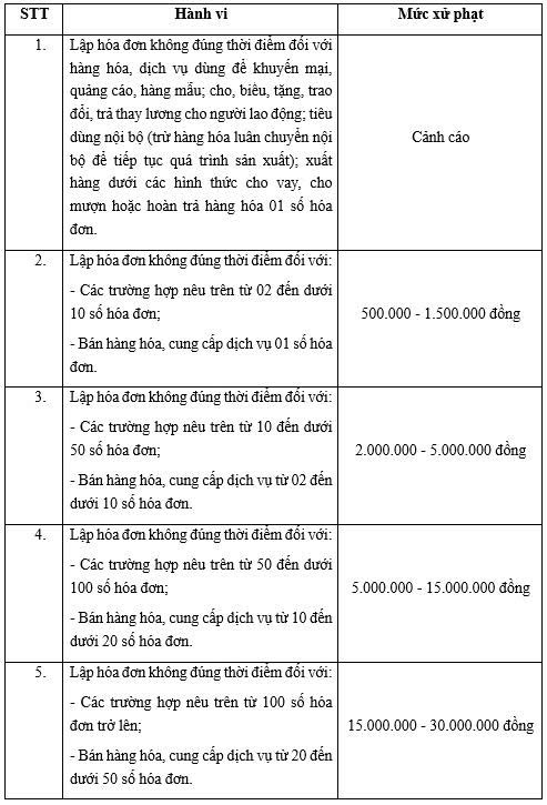 Phạt 70 triệu đồng nếu lập hóa đơn không đúng thời điểm.