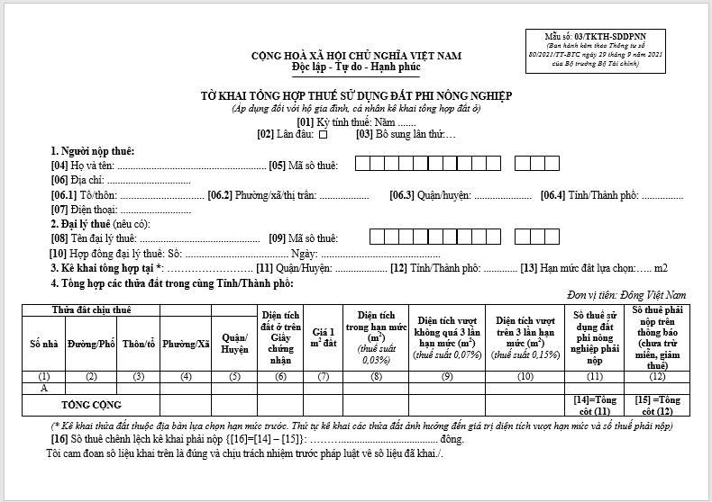 Mẫu 03_TKTH-SDDPNN - Tờ khai tổng hợp thuế sử dụng đất phi nông nghiệp