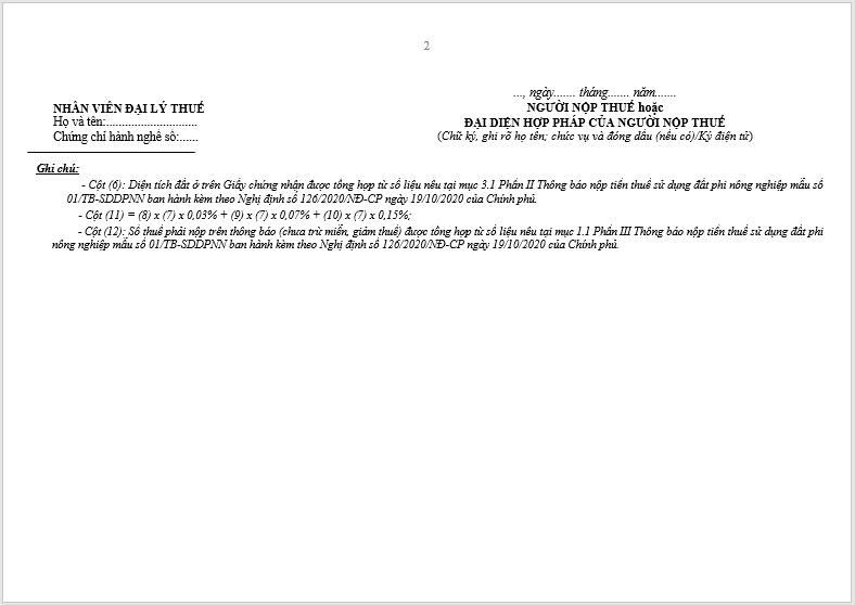 Tờ khai tổng hợp thuế sử dụng đất phi nông nghiệp
