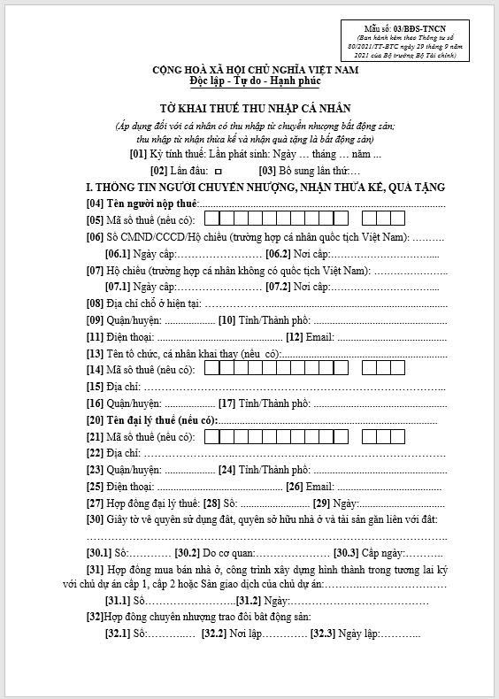 Mẫu số 03_BĐS-TNDN - Tờ khai thuế thu nhập cá nhân