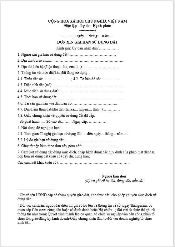 Đơn xin gia hạn sử dụng đất