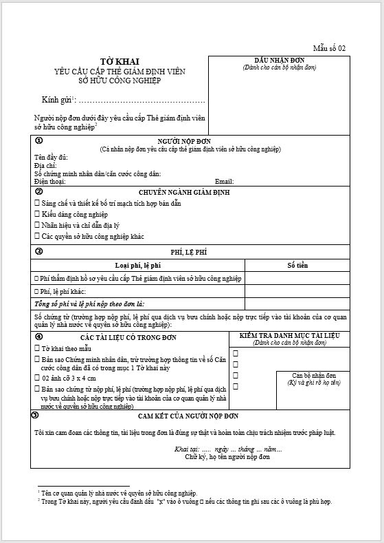 Tờ khai yêu cầu cấp thẻ giám định viên sở hữu công nghiệp